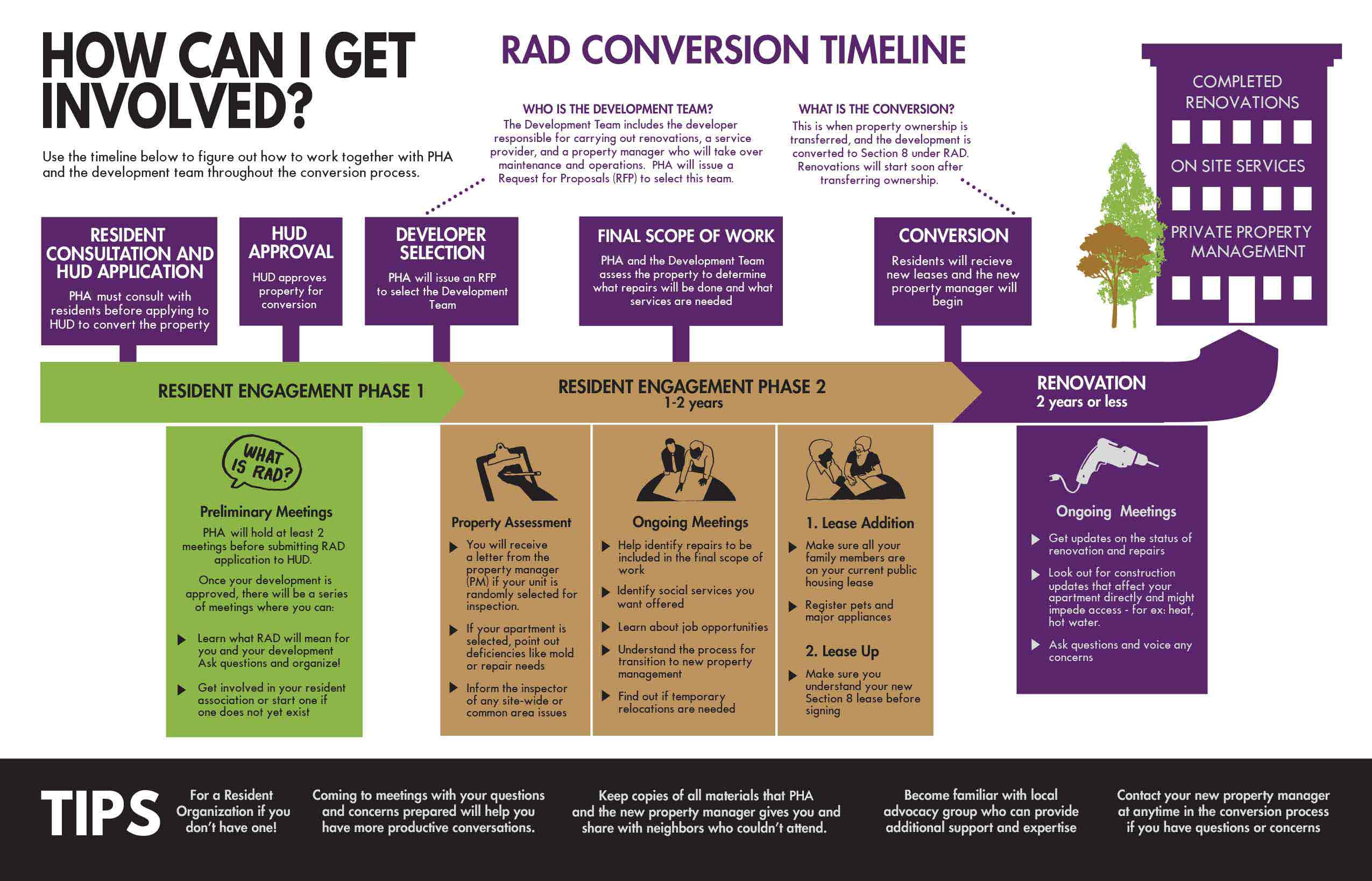 As a Resident of this community you will need to be a part of the process. Make the most of this opportunity to improve your development and maximize the potential benefits of RAD.